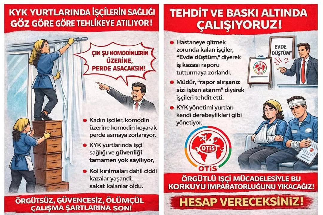KYK yurtlarında işçi sağlığı ve güvenliğinin tamamen yok sayıldığını göstermektedir. Bu güvencesiz koşullarda çalışan işçilerden düşenler olmuş, kolu kırılanlar yaşanmıştır.